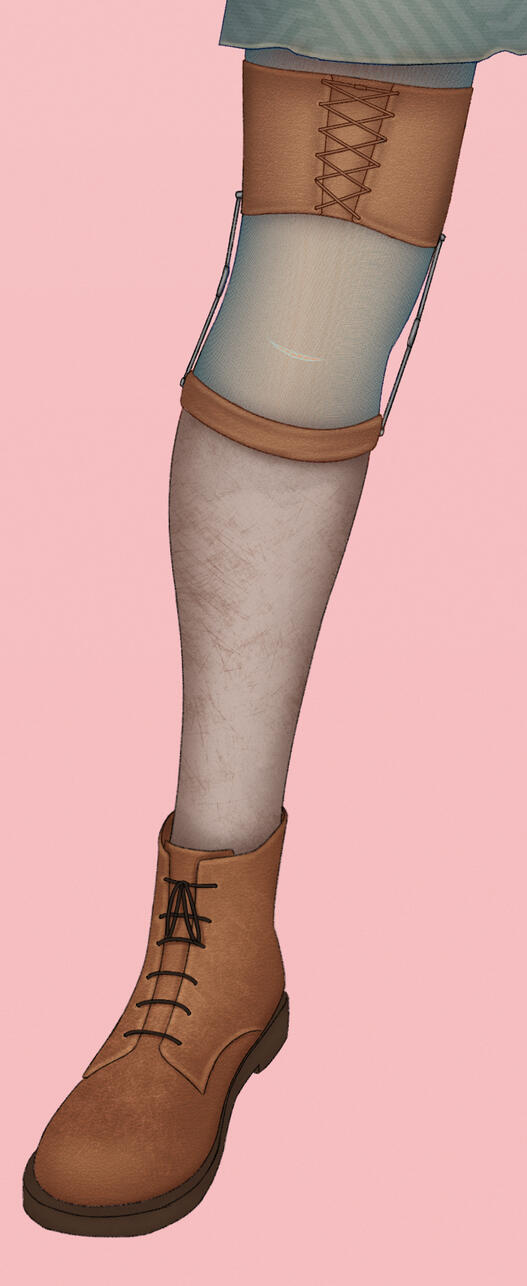 After she lost an eye she opted to get a cybernetic replacement (sourced from the Institute) from a shady underground "doctor" in California. It malfunctions constantly and is mostly a hindrance, but she loves that it glows (when it doesn't shut off entirely)
